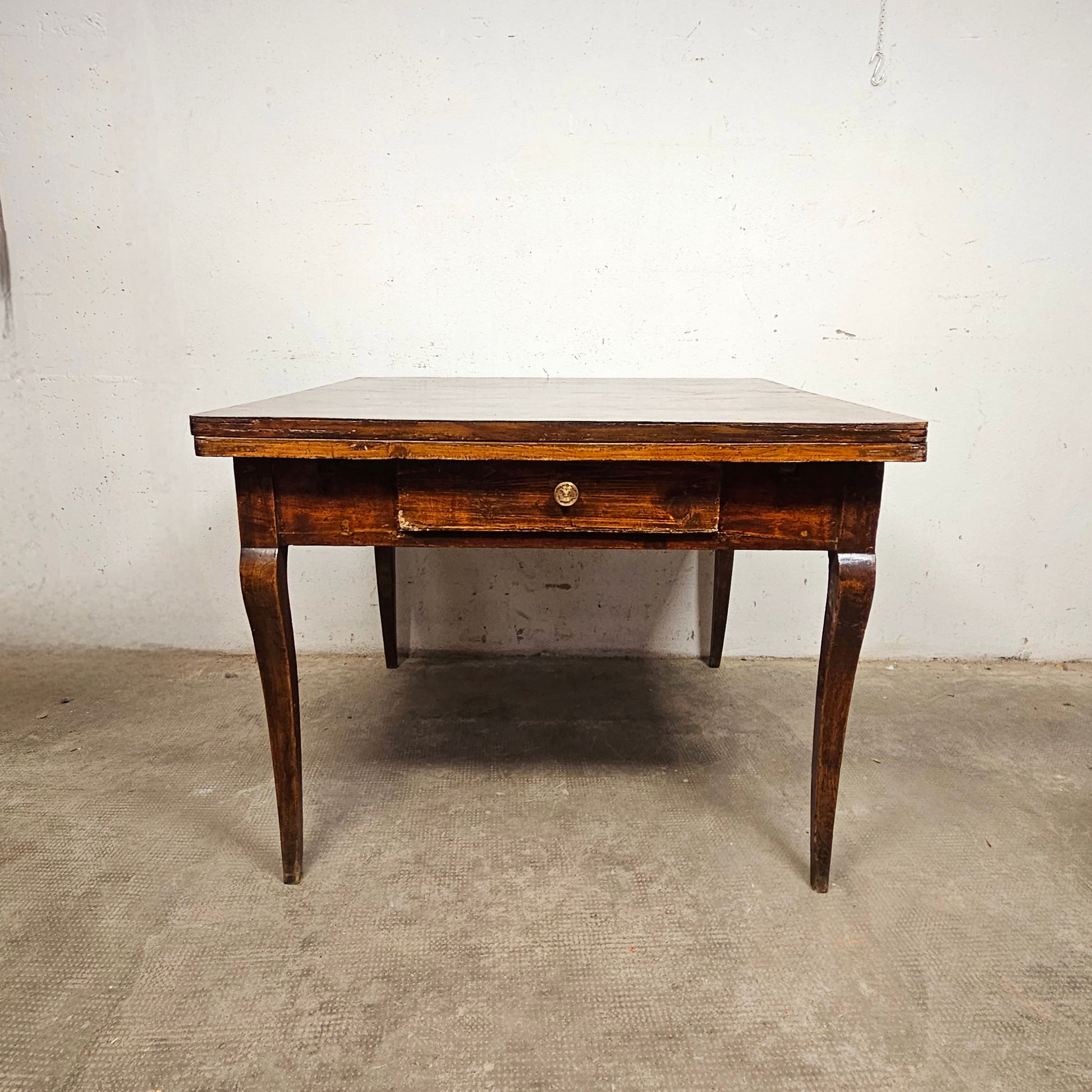 Tavolo con allunghe in legno prodotto nel diciannovesimo secolo, presenta restauri più recenti.